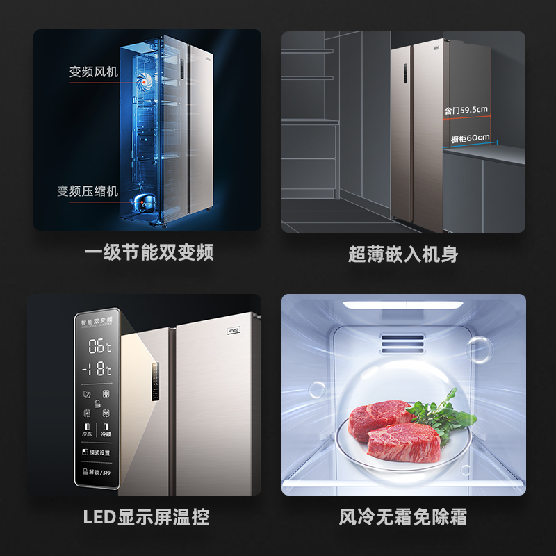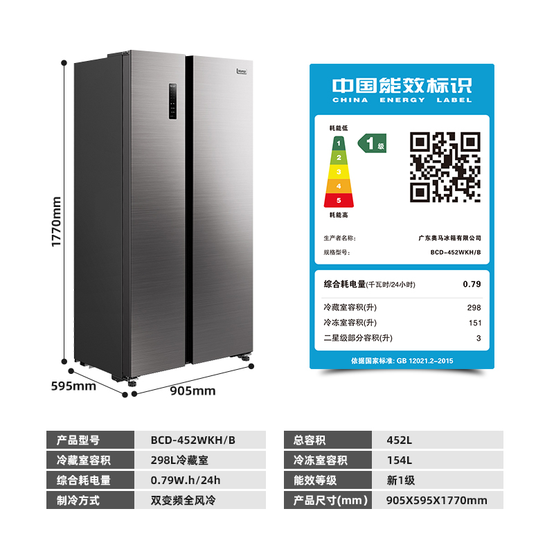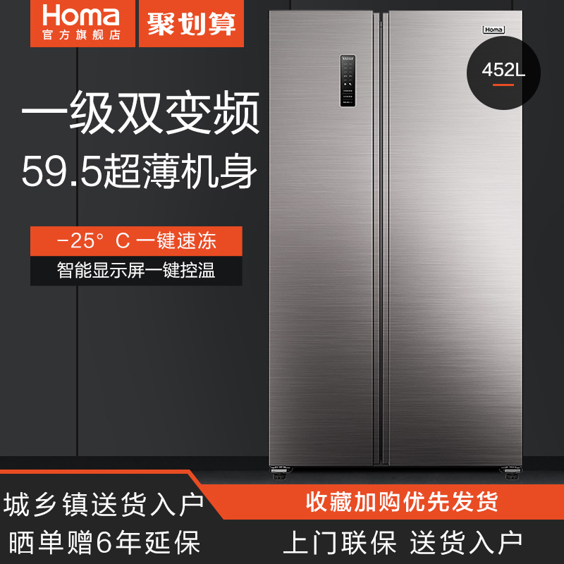 Omar 452L frequency conversion air-cooled frost-free ultra-thin double-door door door-to-door first-class energy-saving double-door refrigerator household