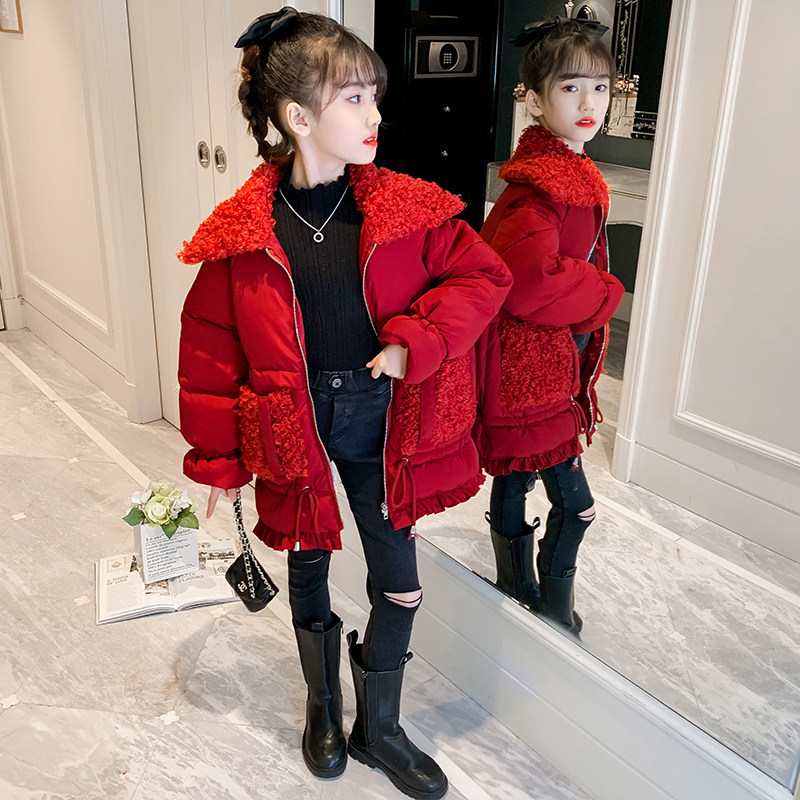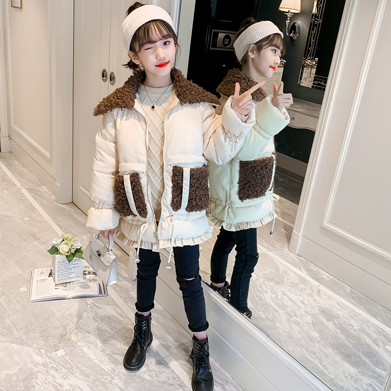 Hong Kong girls winter cotton coat 2021 new foreign style children long version plus velvet padded down jacket