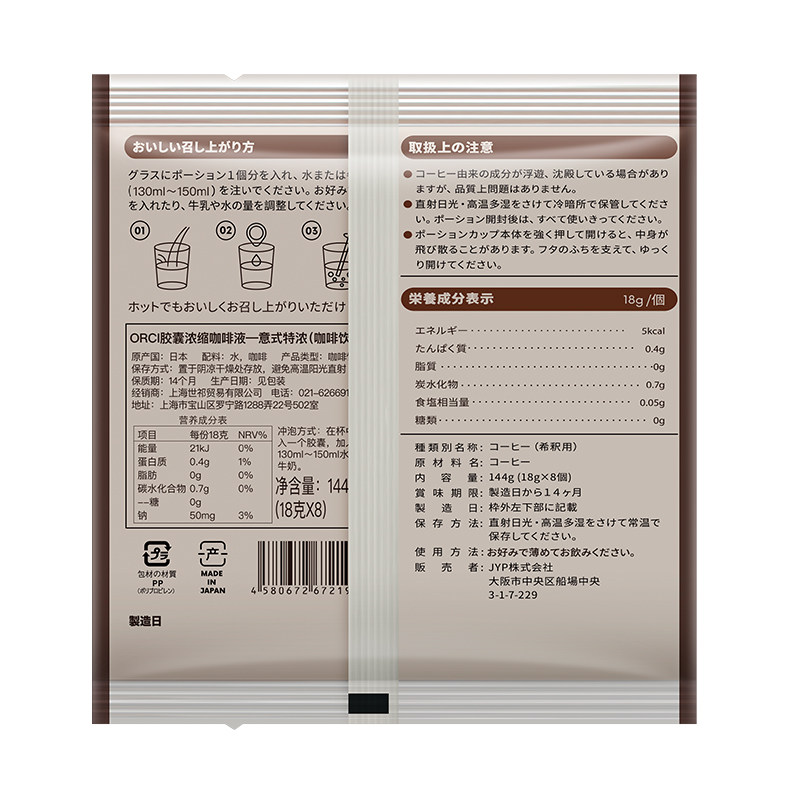 Koala sea-buying Japan imported capsule coffee convenient hand-washing speed 0-fat Italian-style espresso coffee liquid 8 packs