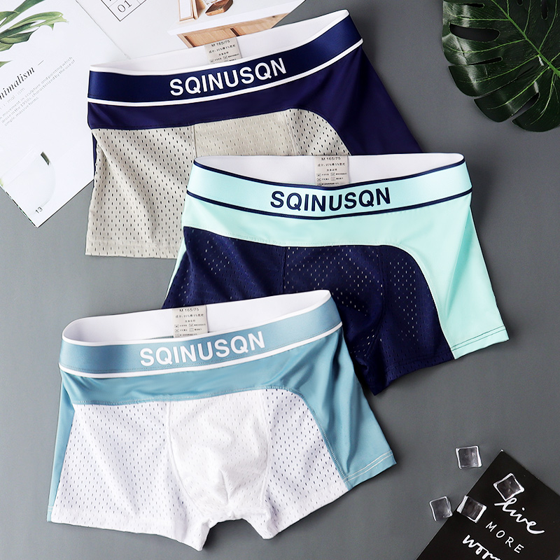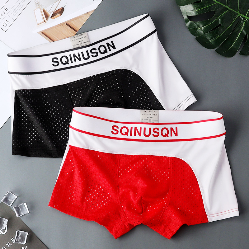 Trendy New Mesh Ice Silk Men's Pants Men's Flat Corner Pants Breathable Summer Guys Four-corner Pants Head Personality Shorts