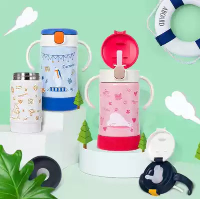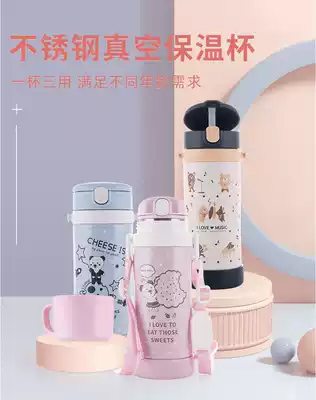 Richell Likhir baby boy Vacuum Thermos cup stainless steel suction tube cup baby handle learning Cup Anti-fall