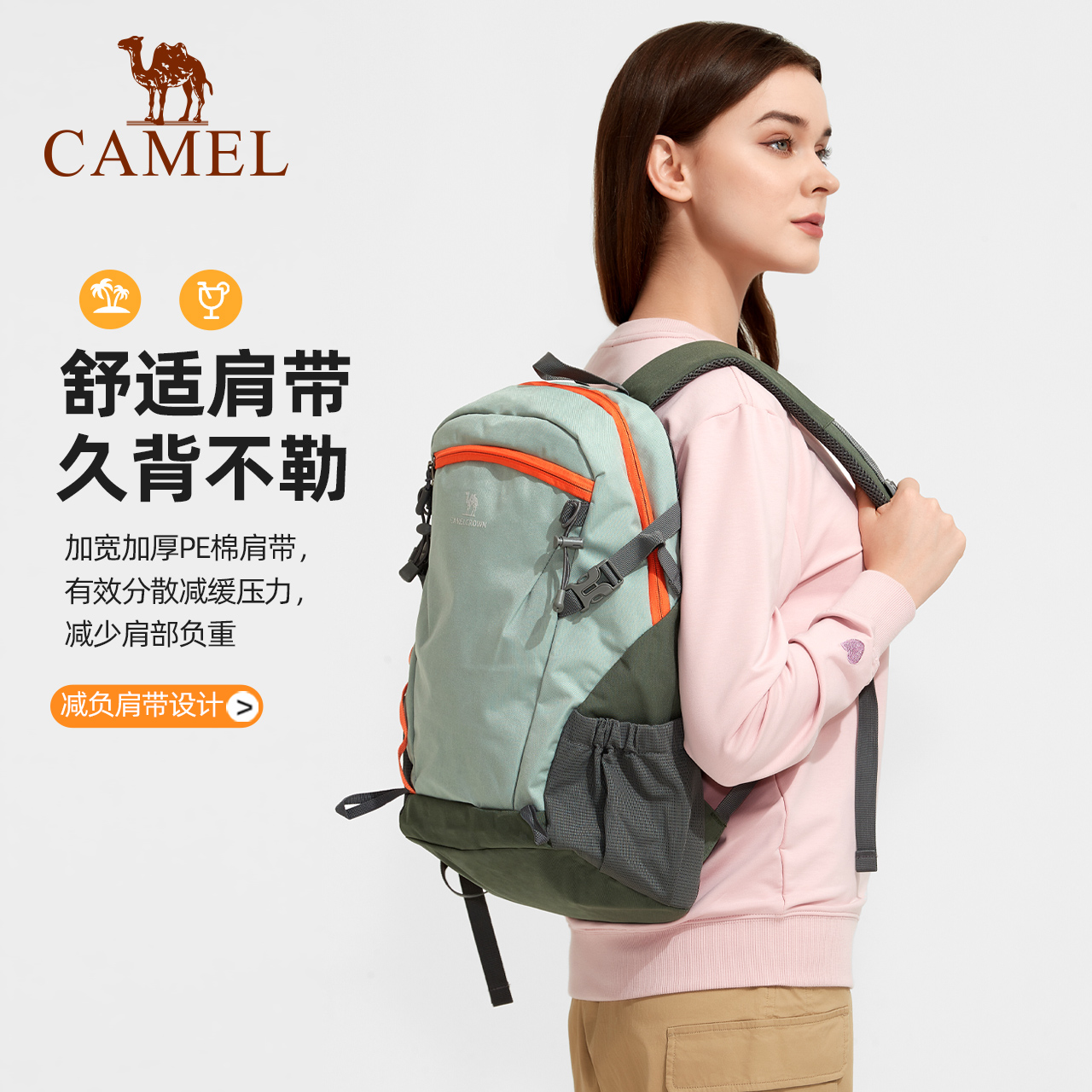 Camel backpack men's and women's backpack college student lightweight minimalist school bag high school ultra-light hiking mountaineering bag tide