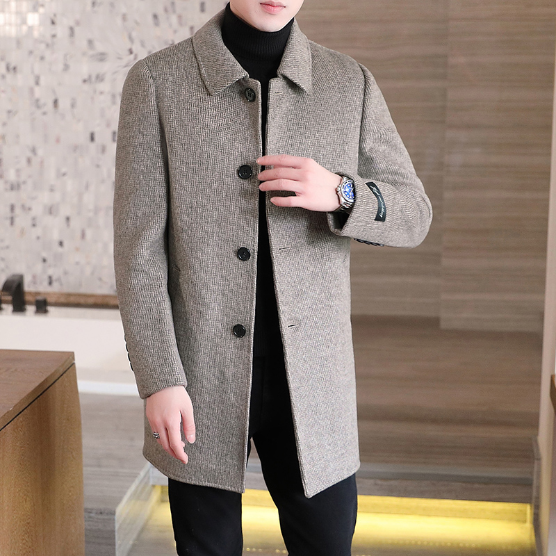 Light extravagant double face cashmere Grand coat men's medium long version down Neri Han version trendy casual workout wool windsuit jacket
