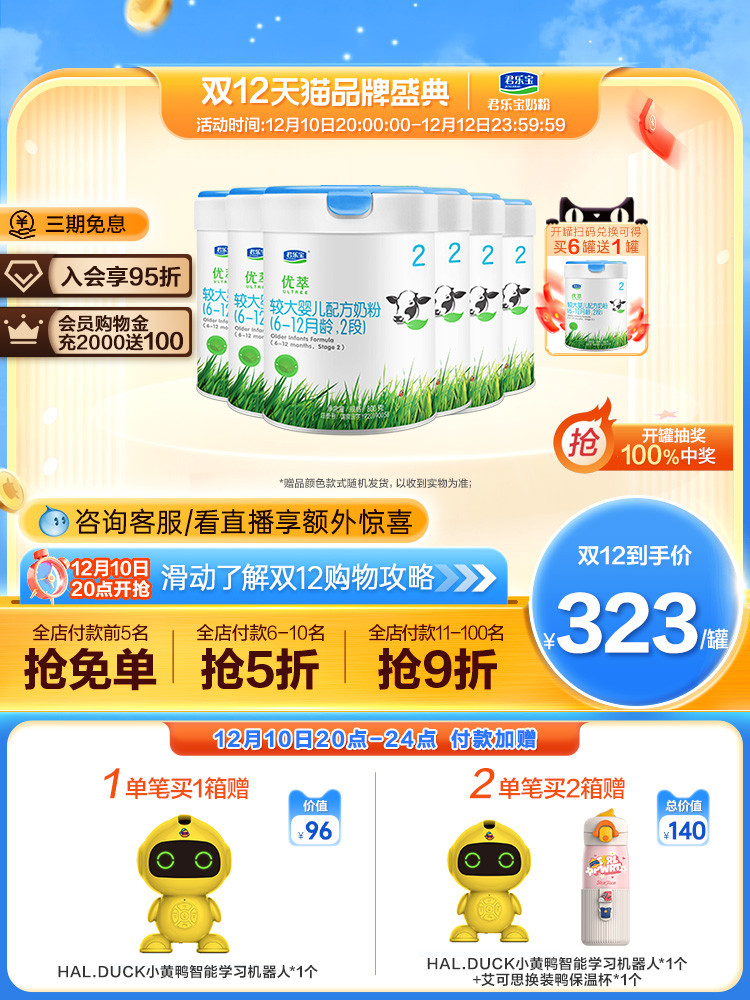 Junlebao flagship store official website 2nd stage excellent extraction organic older infant formula milk powder 2nd stage 800g*6 cans
