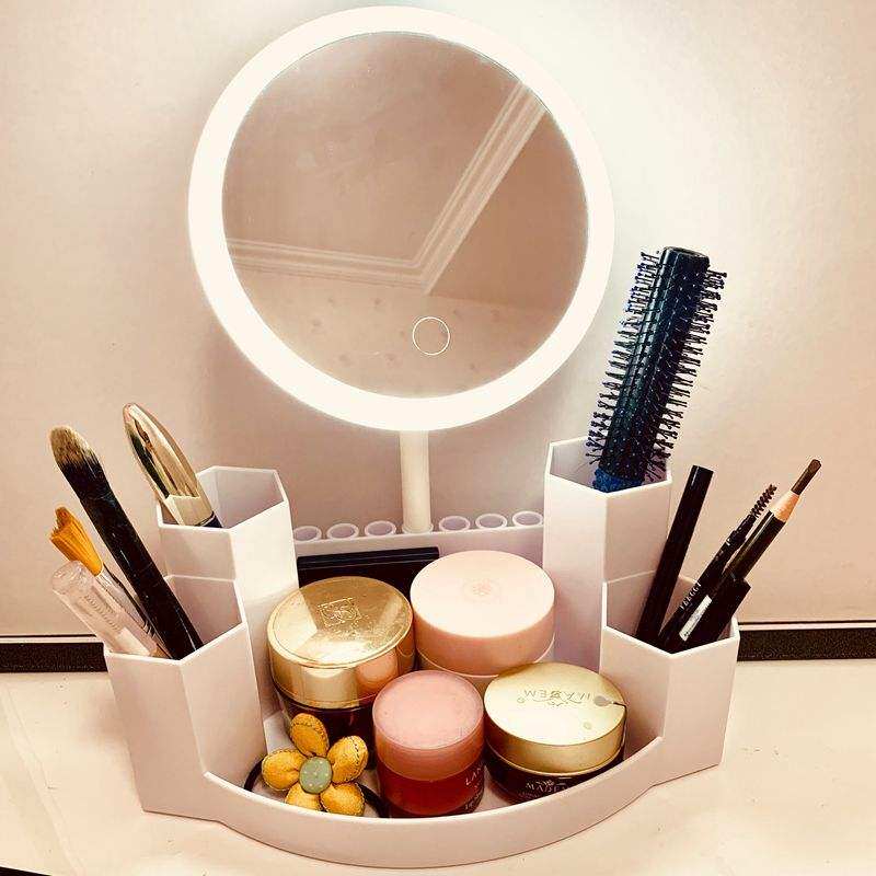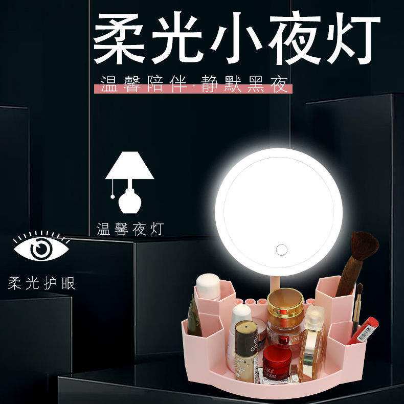 Net red LED makeup mirror storage box student dormitory fill light mirror cosmetic rack charging desktop mirror