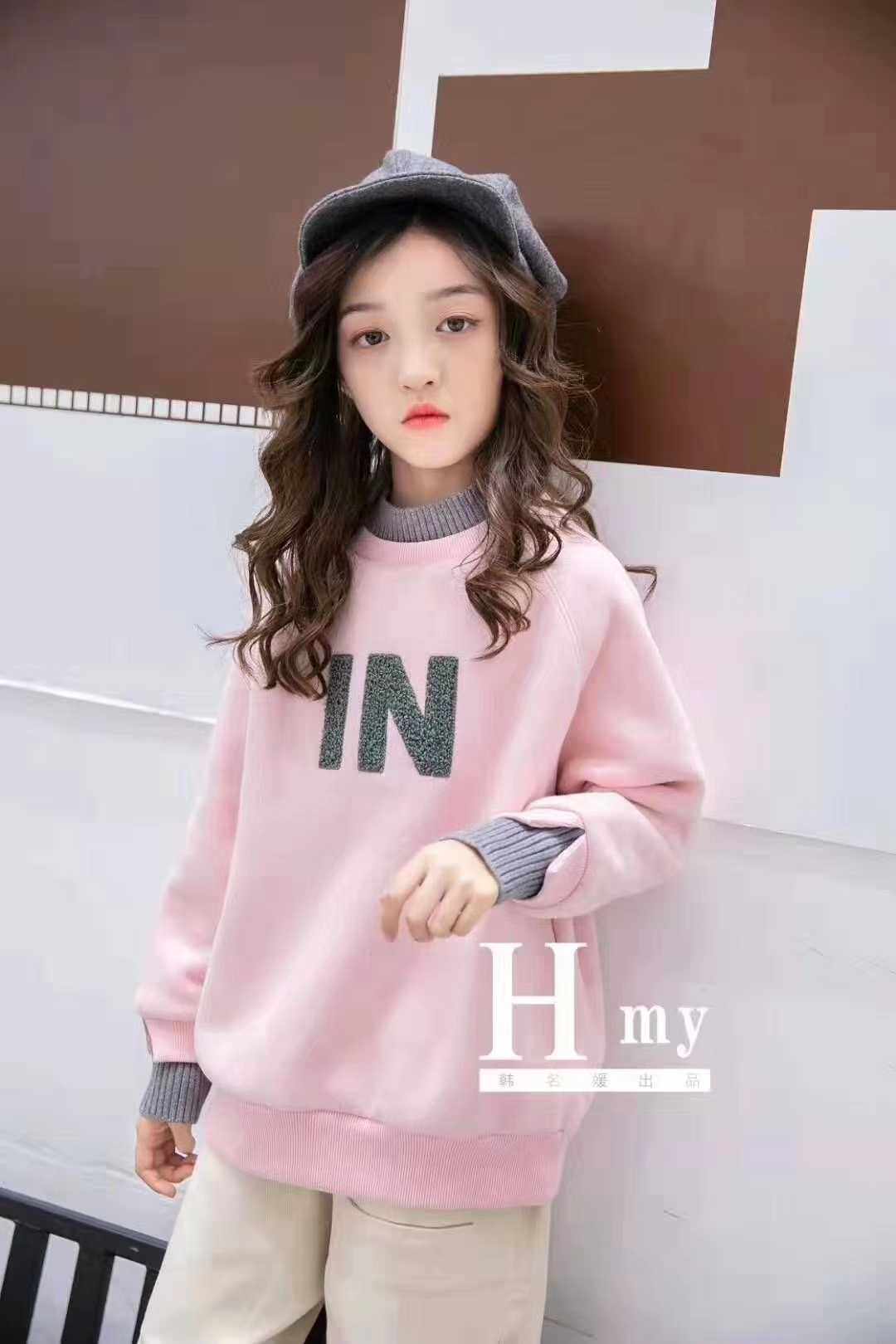 Korean celebrity brand children's clothing girls middle and big children 2022 autumn and winter new half-high collar plus velvet cotton sweater
