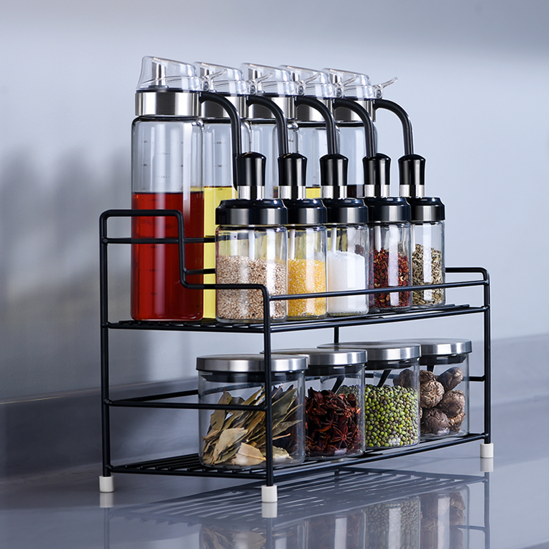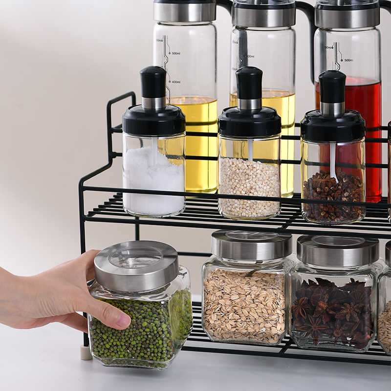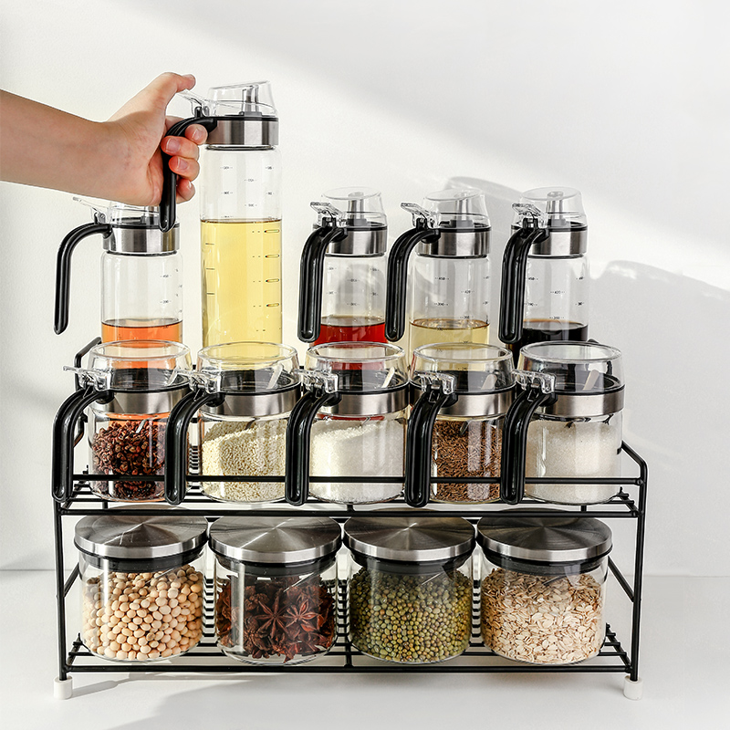 Glass seasoning bottle shelf set Kitchen oil, salt, sauce and vinegar seasoning jar Oil-proof bottle Seasoning bottle combination