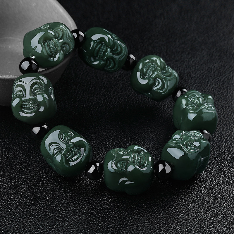 Beqin Cabinet Xinjiang and Tian Yuhand chain Jade Buddha head Qingyu Handstring of male and female jade hand chain jade jade belt certificate