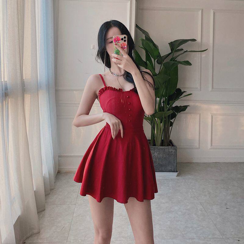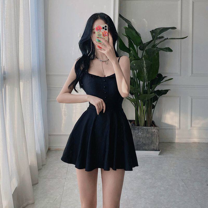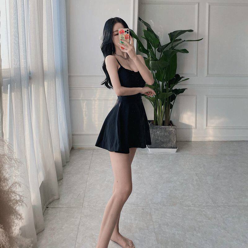 Doodle Han Shang Korean one-piece swimsuit Women's small-breasted skirt conservative belly cover thin halter hot spring swimming suit