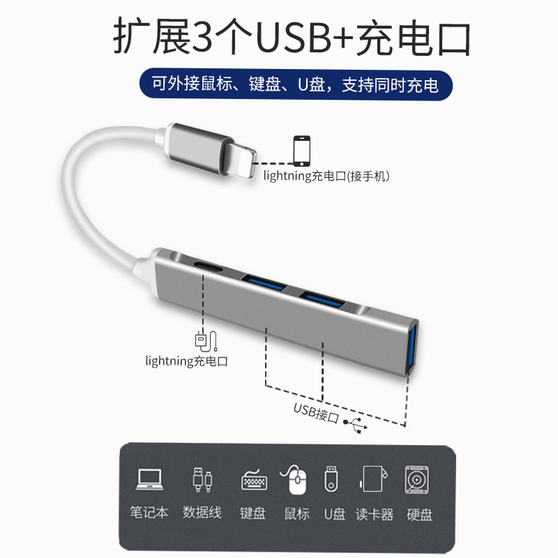 Aluminum alloy housing (Apple turns 3 *USB charging) external U disc camera sliding mouse keyboard Apple lightning turn Typec lighting charge