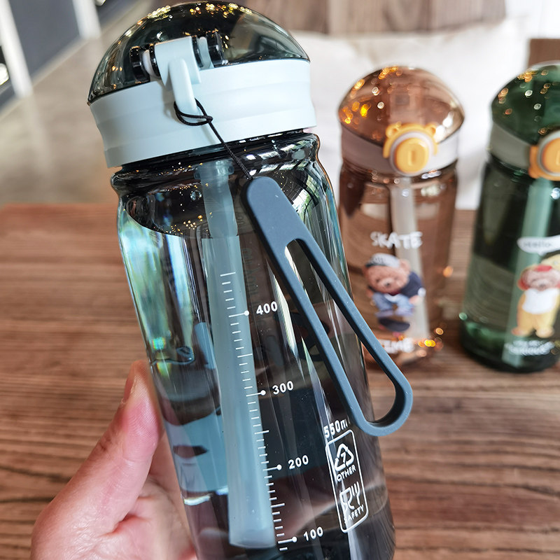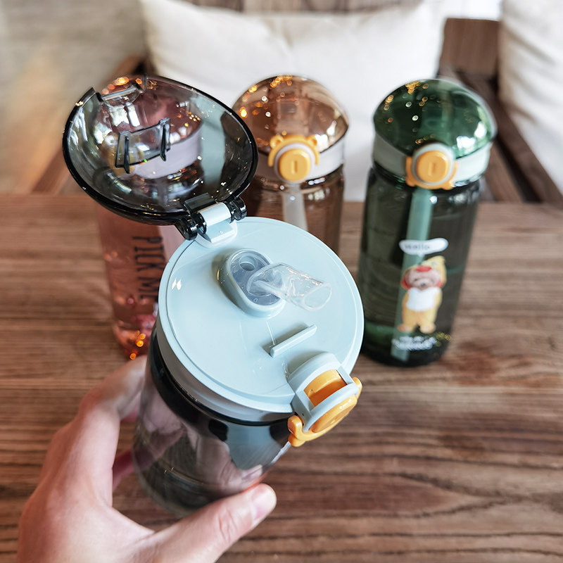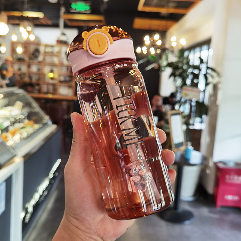Creative Tide Minimalist Plastic Cup Girl Heart Straw Cup Portable Cute Little Clear New Male And Female Student Anti-Fall Water Cup