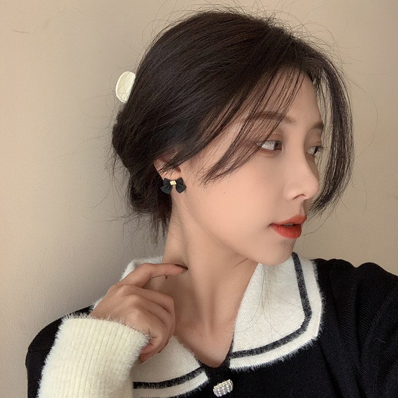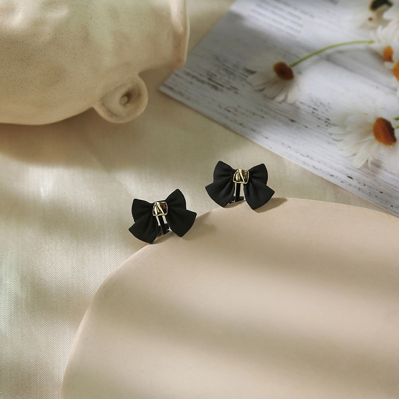 Retro Port Wind Herben Black Butterfly Knot Ear Nail South Korea Temperament Superior Web Red Earrings Without Earhole Ear Clip