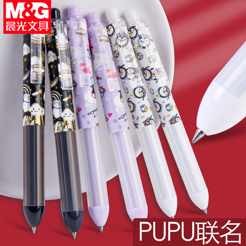Chenguang pupu penguin joint limited edition press-type gel pen 0 5 black pen for students to press water-based pen cute super cute cartoon test pen ins Japanese ballpoint pen large-capacity refill