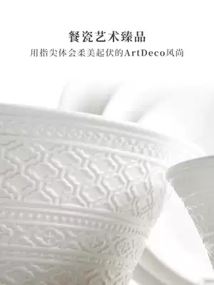 Margolont 6-person pure white embossed tableware set Household light luxury simple creative bowl and dish combination gift