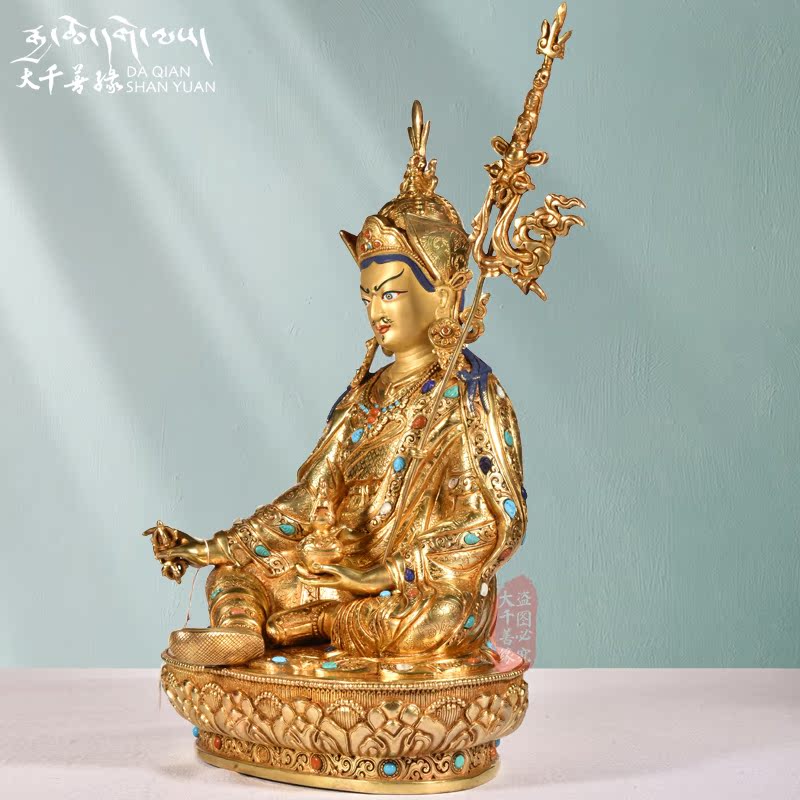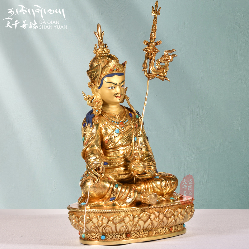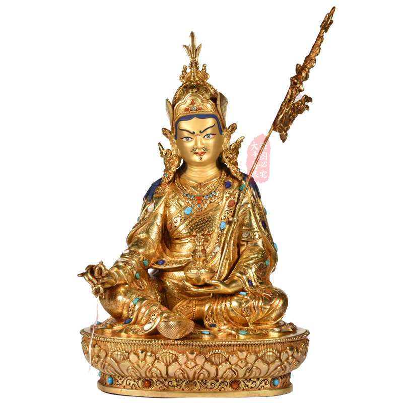 Nepal imports pure hand - made 1 - foot Lotus peanut master Buddha statue 10 inches Tibetan Dasun Gold Copper statue