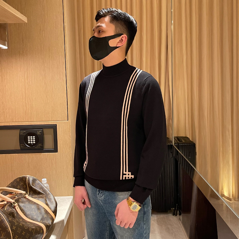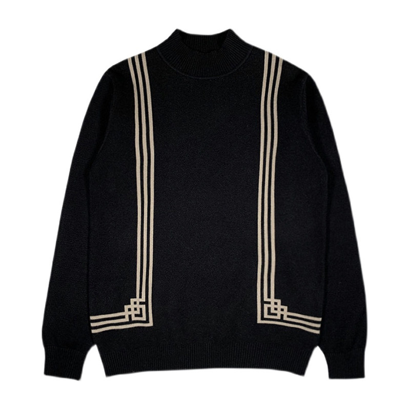 Autumn Winter Clothing Men's Warm Blouses Sweaters Sweaters Classic Vintage Comeback Art Hit Color Streaks Semi-High Collar Sweater Male