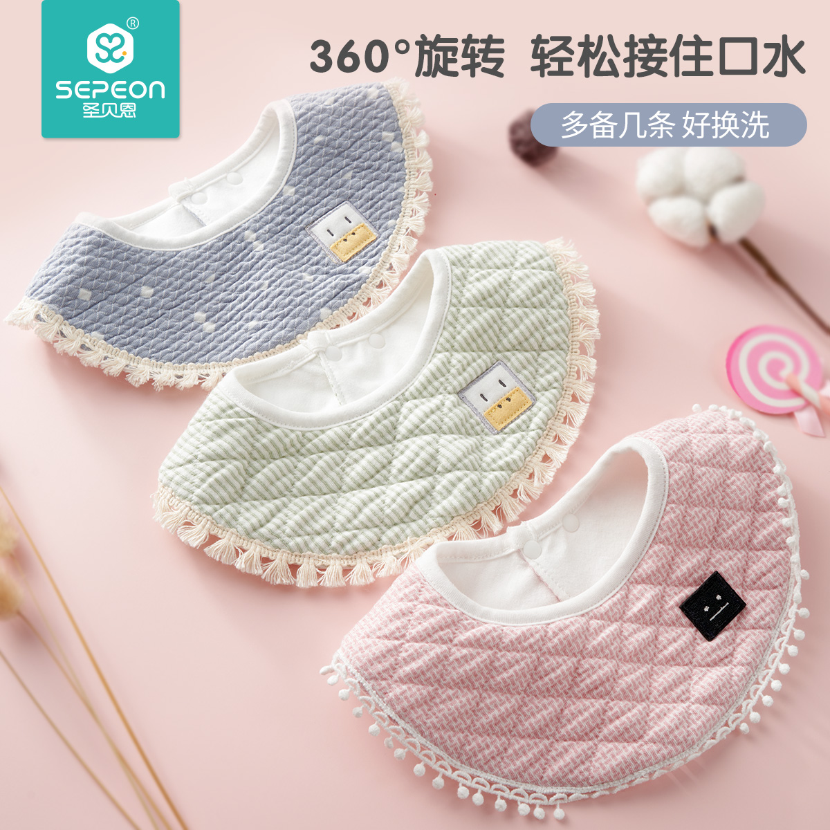 Baby bib waterproof spit bib autumn and winter thickened cotton to eat 360 degrees rotating newborn baby saliva towel