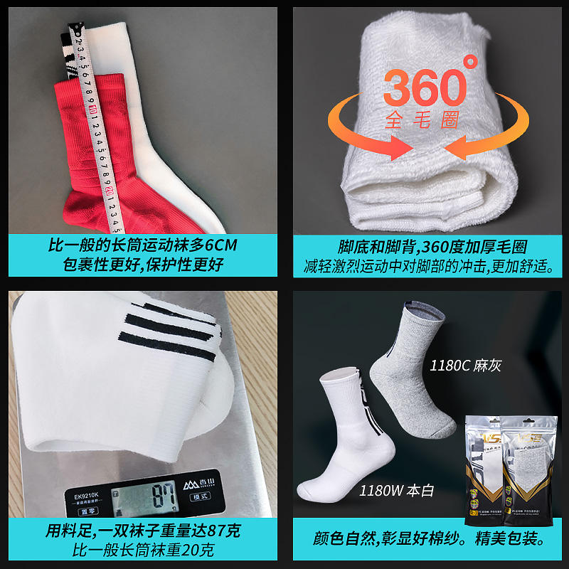 Weschen Sports Badminton Socks Long Barrel Professional Sports Running Men's Cotton Tennis Basketball Socks Antibacterial And Odorproof