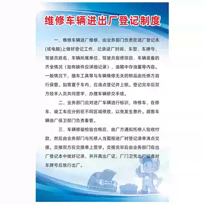 Auto repair factory management system card Full set of 4S shop auto repair factory two or three types of management rules and regulations on the wall poster factory store workshop safety production slogan logo card prompt card KT board