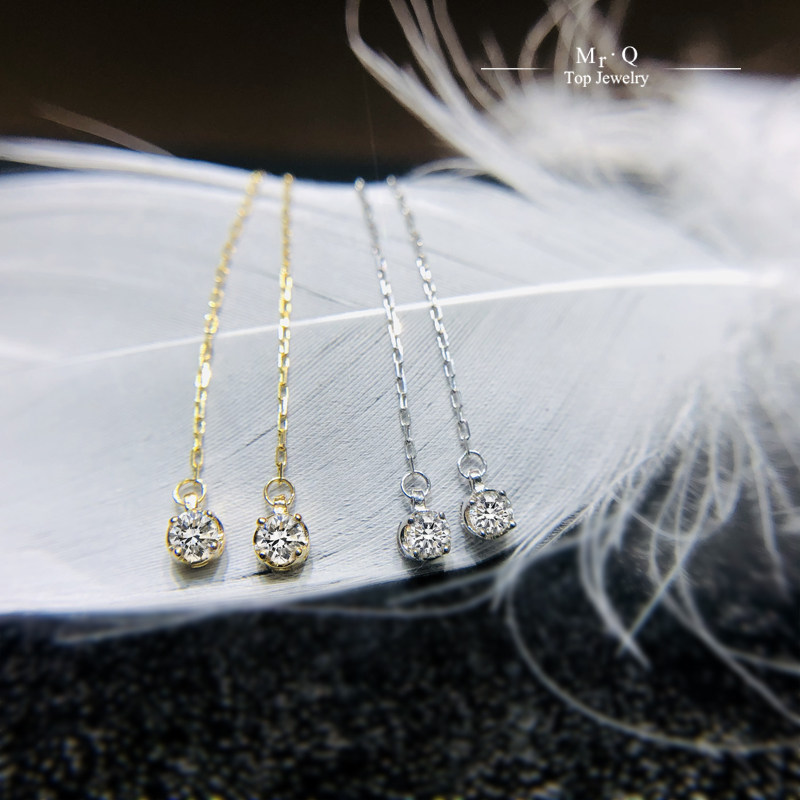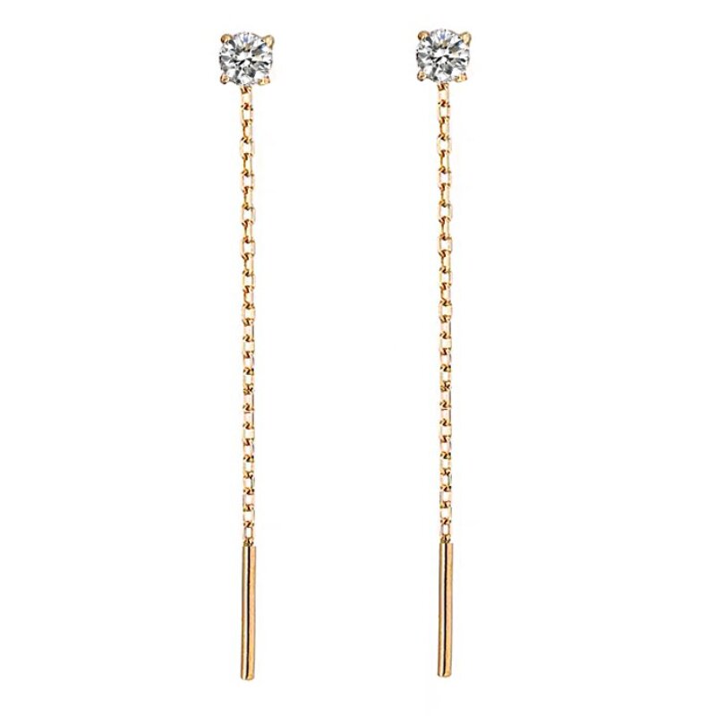 South African real diamond 18K gold diamond earrings AU750 single diamond earrings simple light luxury long face-lift earrings women's new