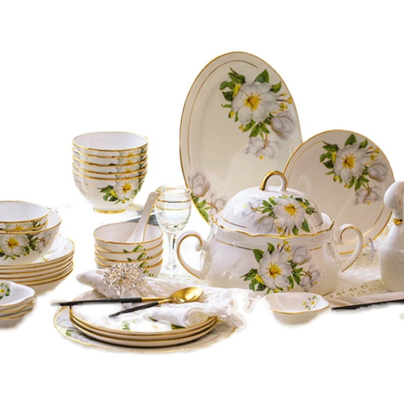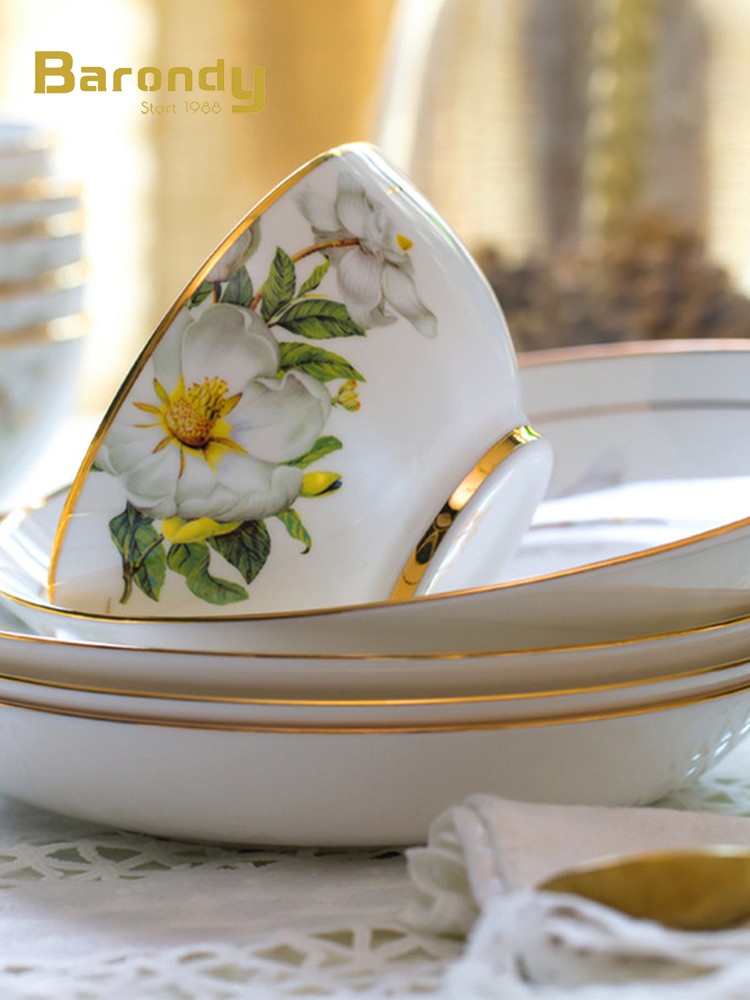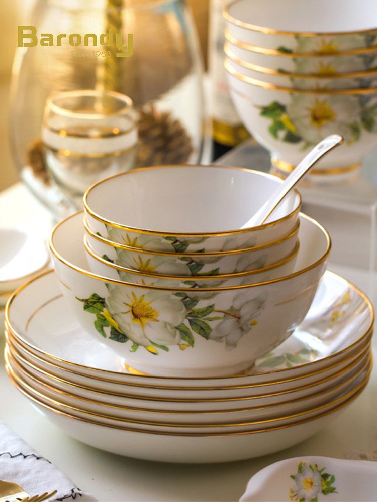 Barondy light and luxurious ceramic instrumental European Dish Chopsticks Bowl tray Home combine Wedding Gift Cutlery Sets