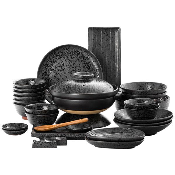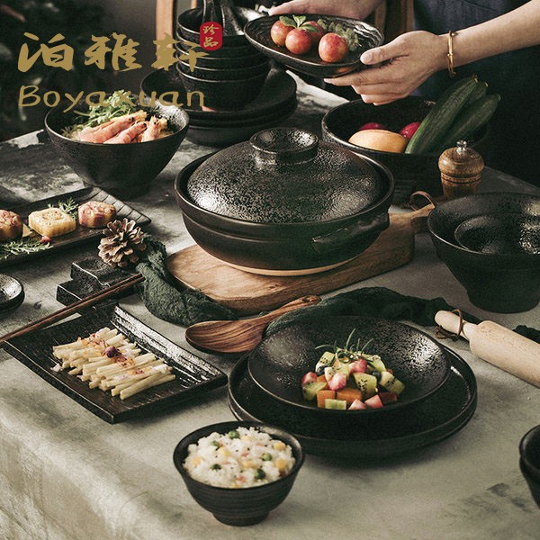 Japanese tableware dishes set home retro dishes bowl chopsticks combination Jingdezhen ceramic luxury gift