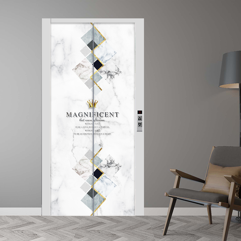 Elevator stickers elevator door decoration door stickers home simple anti-theft door self-adhesive Nordic light luxury marble pattern painting