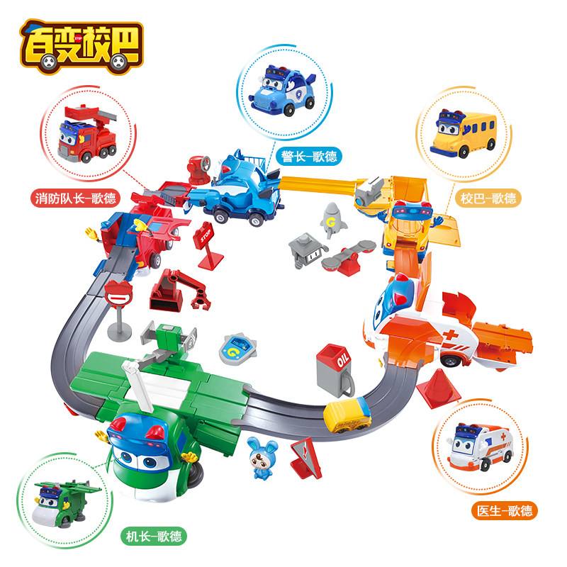 100 Variable School Bar Scene Track Track Deformation Car Machine Changsong Fire Truck Sheriff's Doctor Toy Body Suit