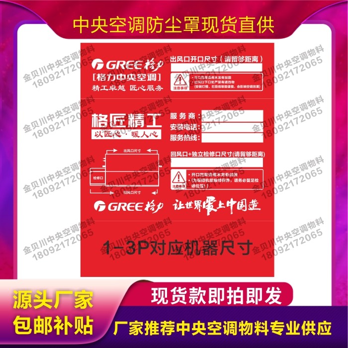 Gree central air conditioning non-woven dust cover spot can be customized information dust jacket line control cover pipe label sticker