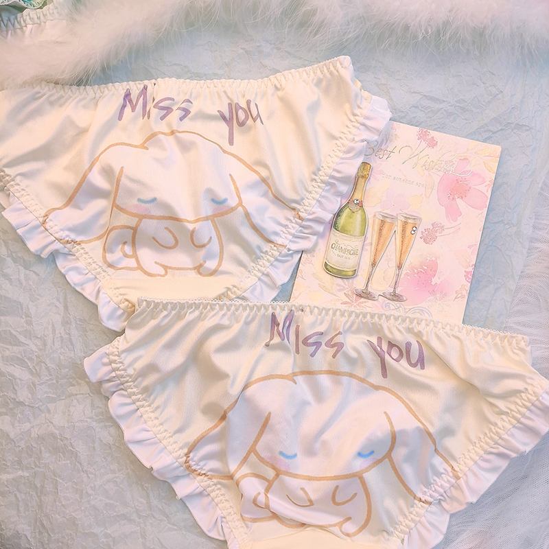 Yu Gui Dog 3 0 Japanese Girl Milk Silk Briefs Lotus Leaf with low waist and butterfly knot Hip Cute Triangle Pants Sweet