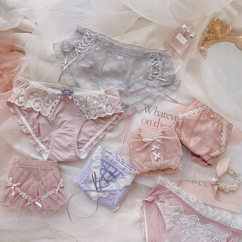 Japanese girl underwear female sweet small fresh milk silk shorts lace belt breathable purple sexy seamless cotton