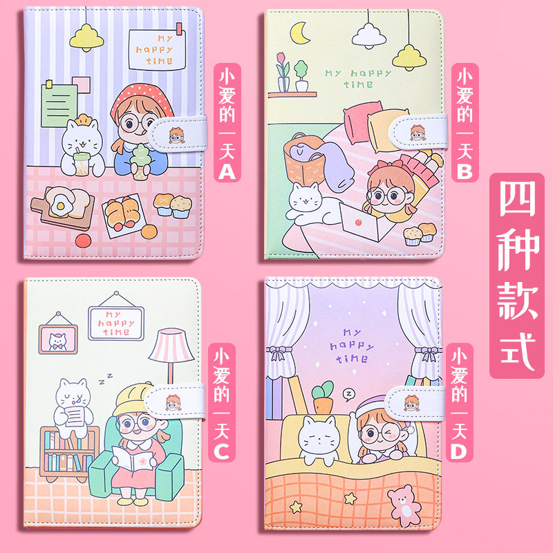 Hand book cute girl heart simple Japanese decompress hand book set girls cartoon literature and art exquisite grid notebook creative decompression this personality magnetic buckle diary portable book