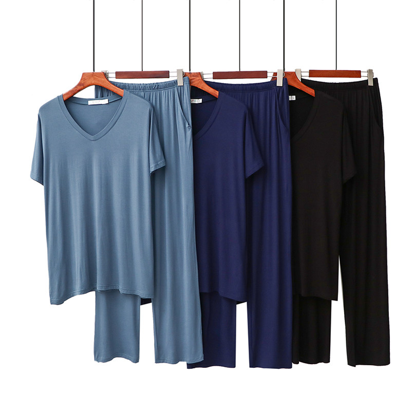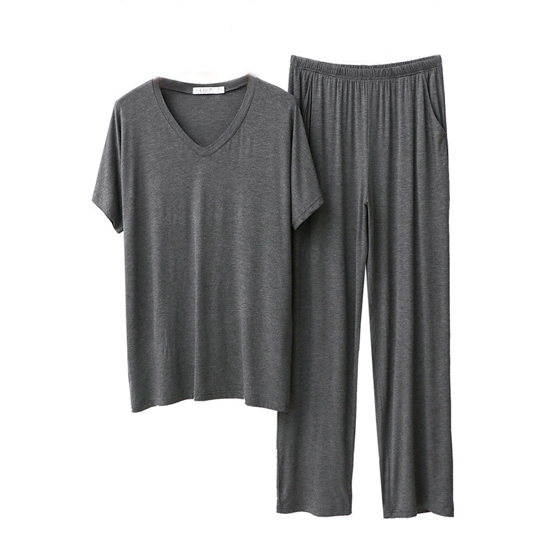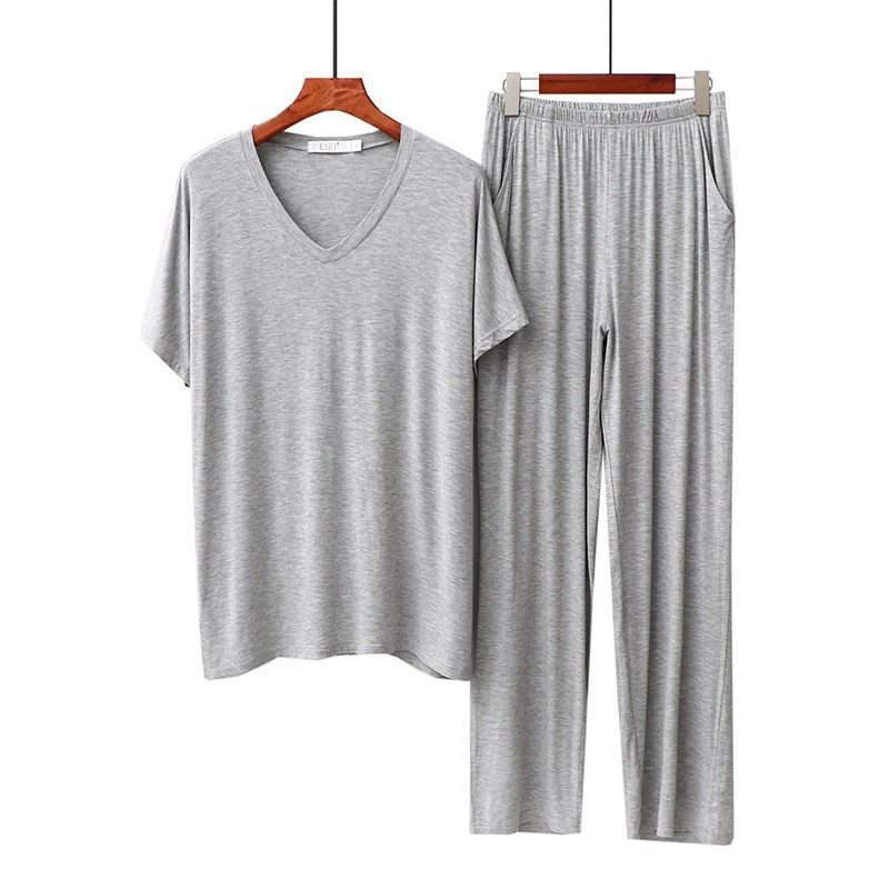 Modal spring and summer pajamas men's round neck casual short-sleeved trousers men's V-neck V-neck elastic homewear suit