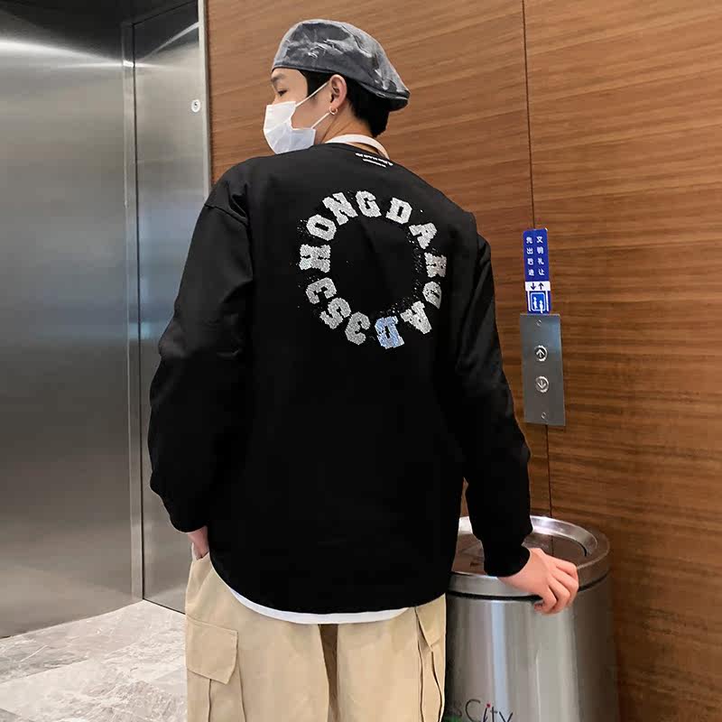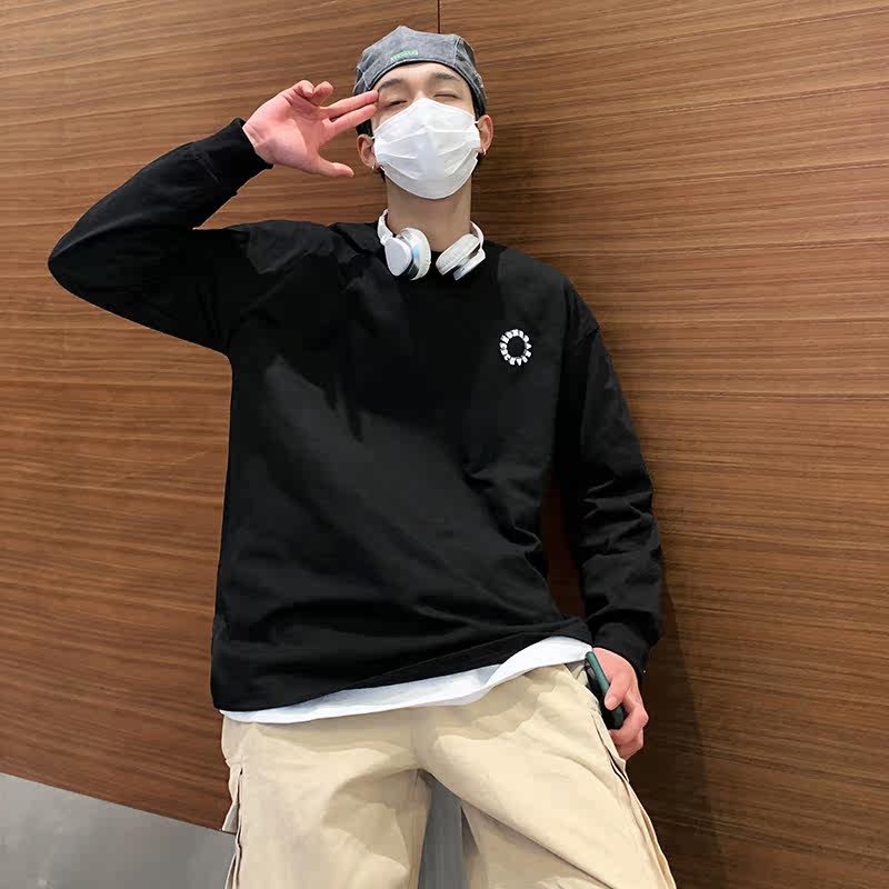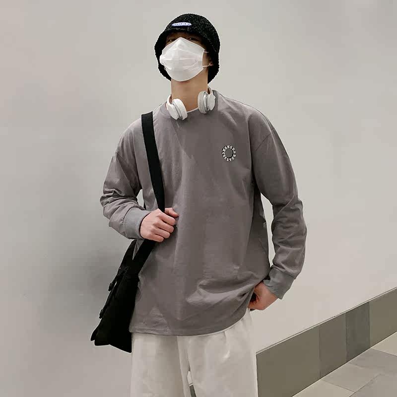2021 Spring new Chains Long sleeves Long sleeves T-Shirt Men's Korean version Loose Blouse Trend Harbor Wind 100 Hitch Undershirt