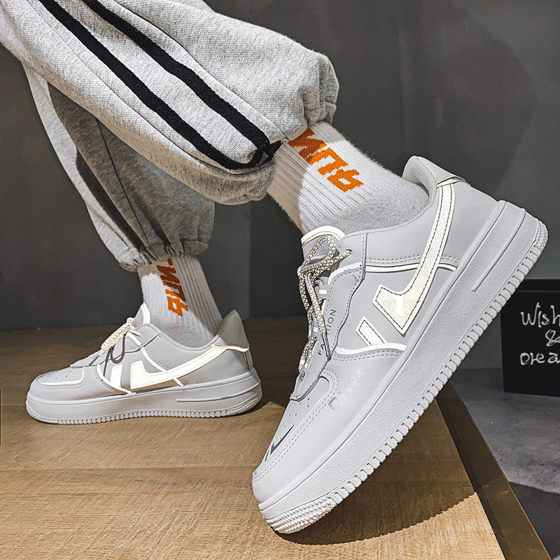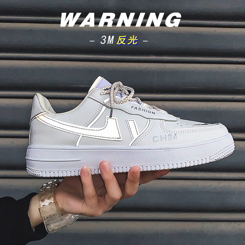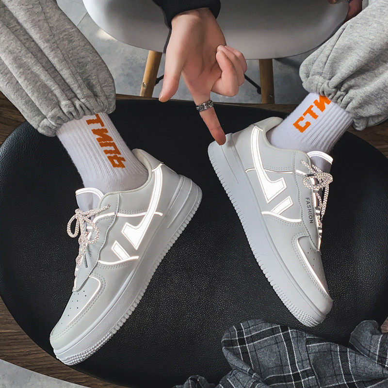 Spring student casual white shoes Korean version of the wild reflective ins board shoes Air Force No. 1 shoes men's couple tide shoes
