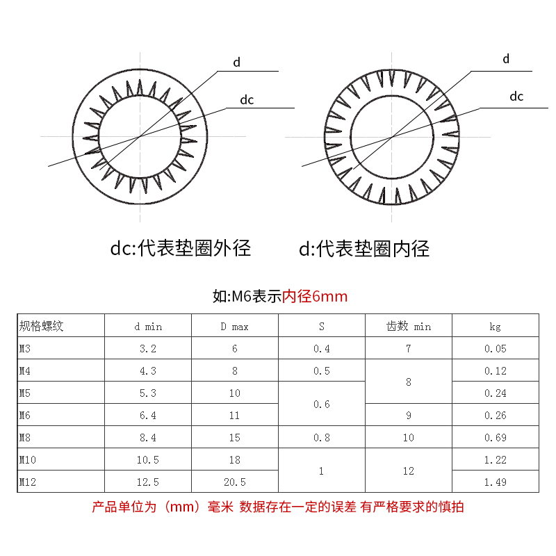 304 stainless steel locking gasket internal serrated anti-loose gasket DIN6798J Self-locking stop gasket M3-M24