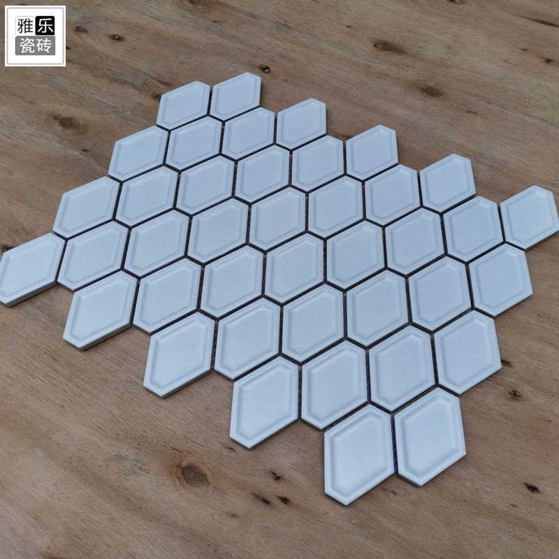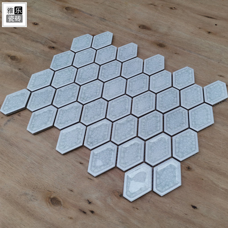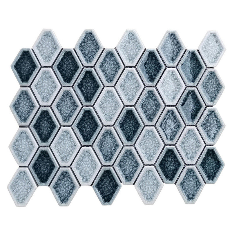 Concave ice cracked green tile rhombus long hexagonal powder room dining shop background wall gray blue ceramic mosaic