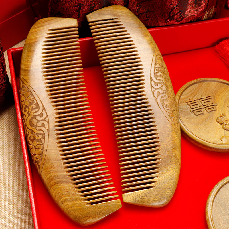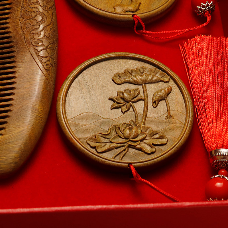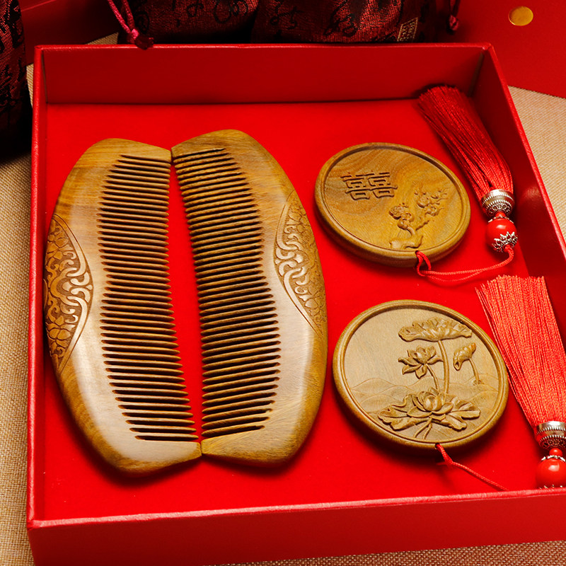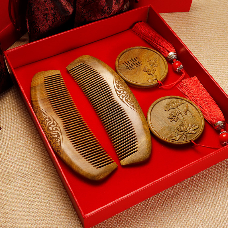 Green sandalwood comb mirror set mirror comb wedding celebration dowry hi bride back souvenir Valentine's Day girlfriend