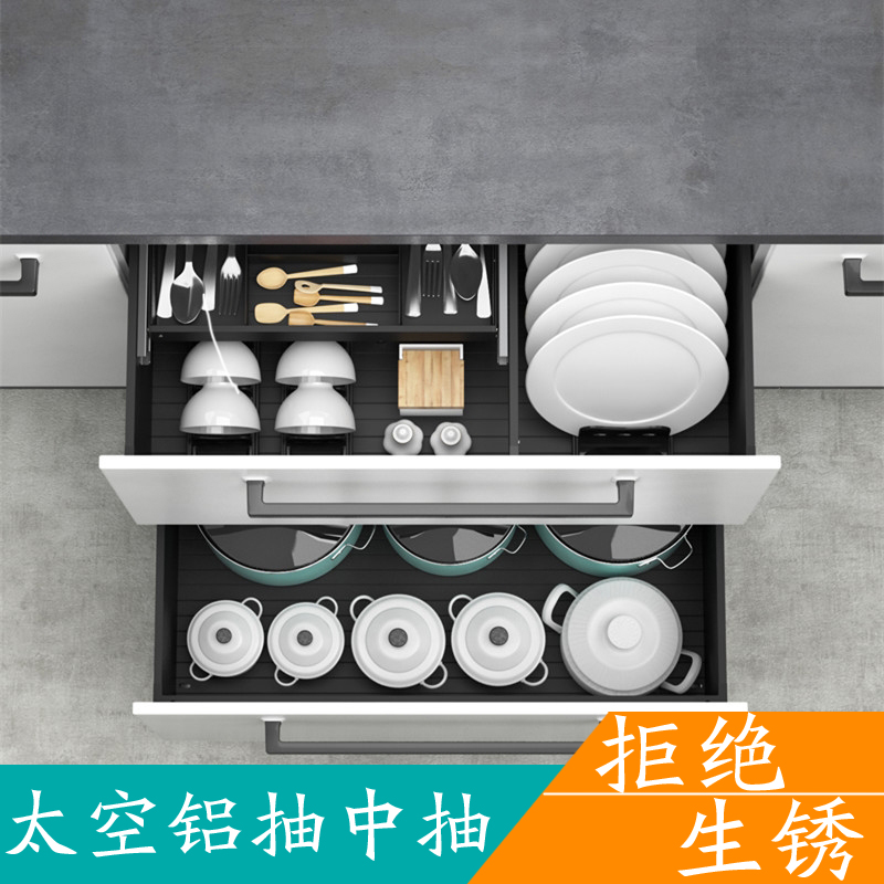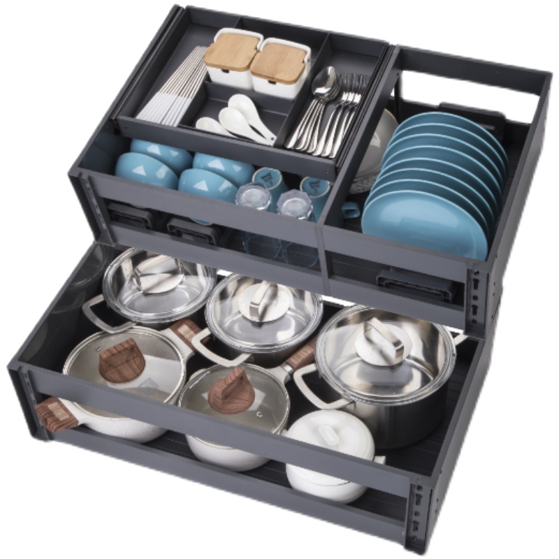 Kitchen Integral Cupboard Pull Basket Double aluminium alloy cramps Pumping Containing Bowls Saucer three layers damping drawer Seasoning Pull Basket