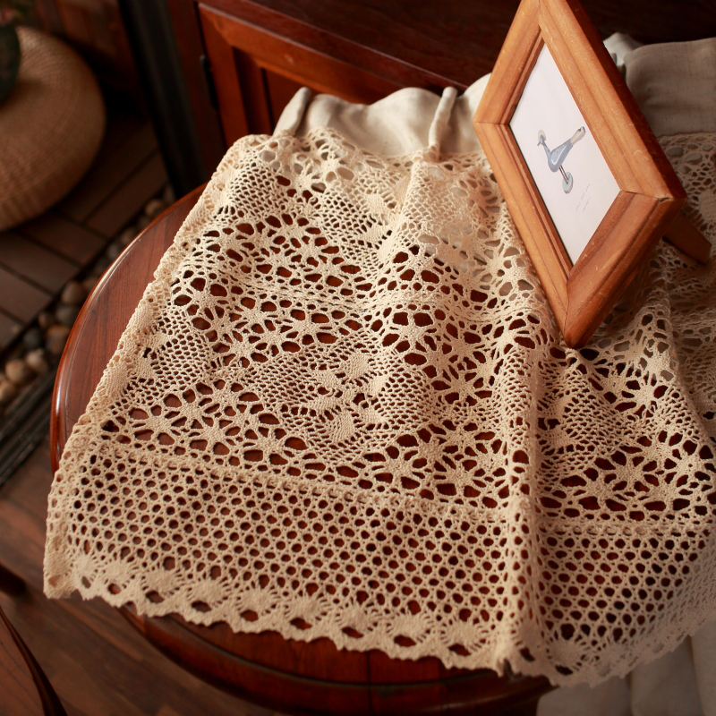 Custom American country solid color crochet curtain head finished curtain floor-to-ceiling window bay window literary retro living room dining room