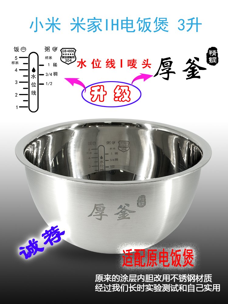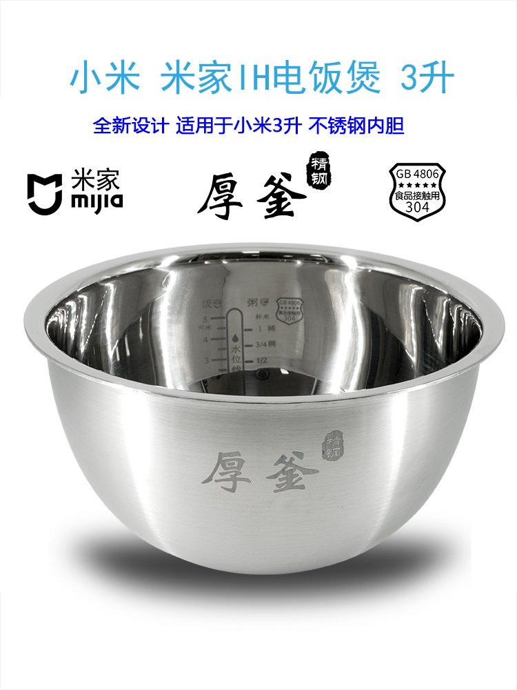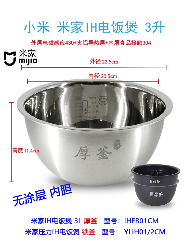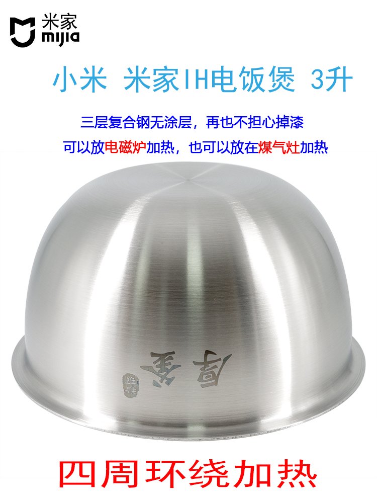 Xiaomi IH rice cooker stainless steel inner liner stainless steel uncoated Mijia pressure rice cooker iron kettle 3L flame thick kettle