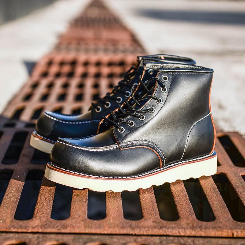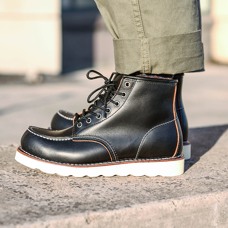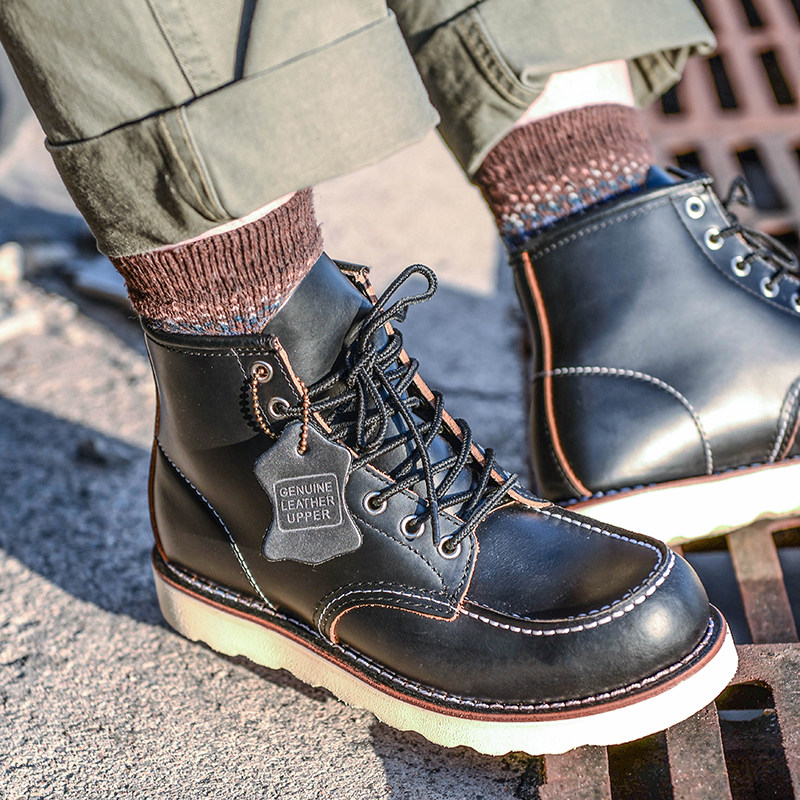 Ami khaki Goodyear 875 tooling boots 1907 retro leather mid-tube Martin boots couple motorcycle boots men's tide