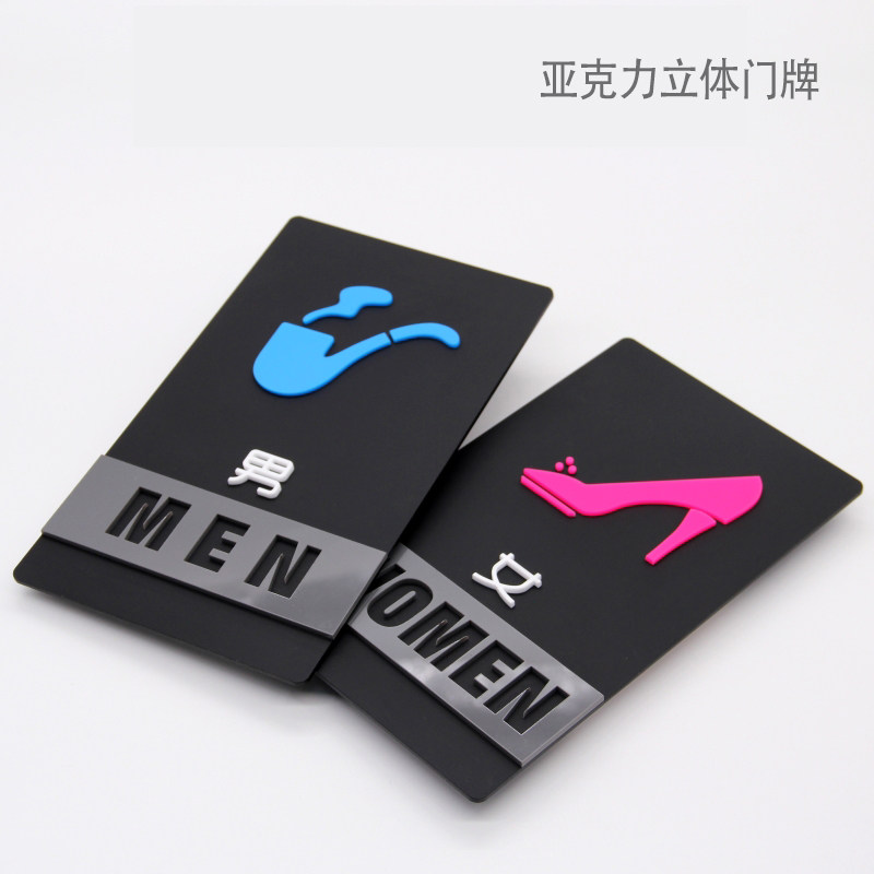 High Gear Acrylic Solid Bathroom Door Card Toilet Door Board Signage Men And Women's Makeup Room Logo Placard Cue Cards