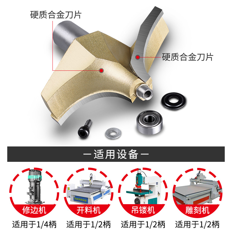 Semi-round knife woodworking milling tool large full r-type arc trimming machine Electric washing knife head backwards garden gong knife