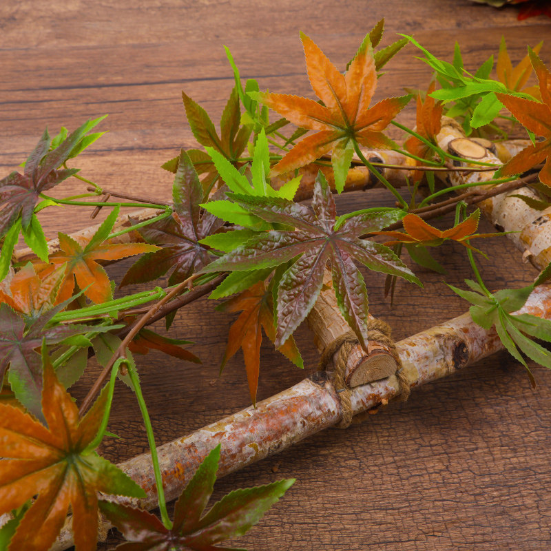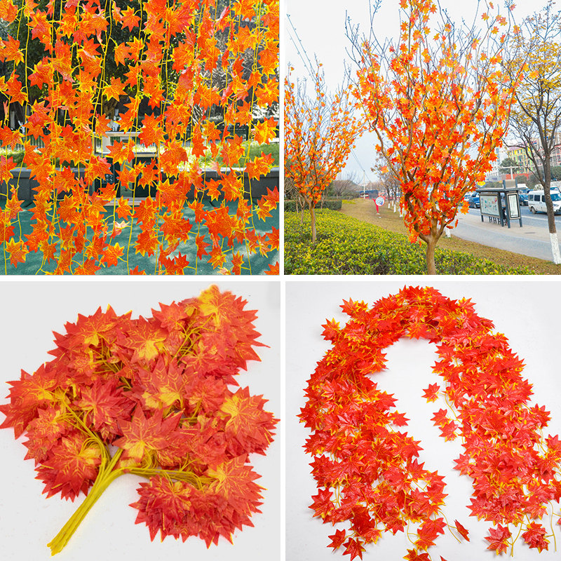 30 slices of red maple leaf (12 dress) 36 slices of red maple leaf (12 strips) green maple leaf vines red maple leaf vines tripods red maple leaf 12 branches with five forks of red maple leaf branches (12 branches) tripods big red