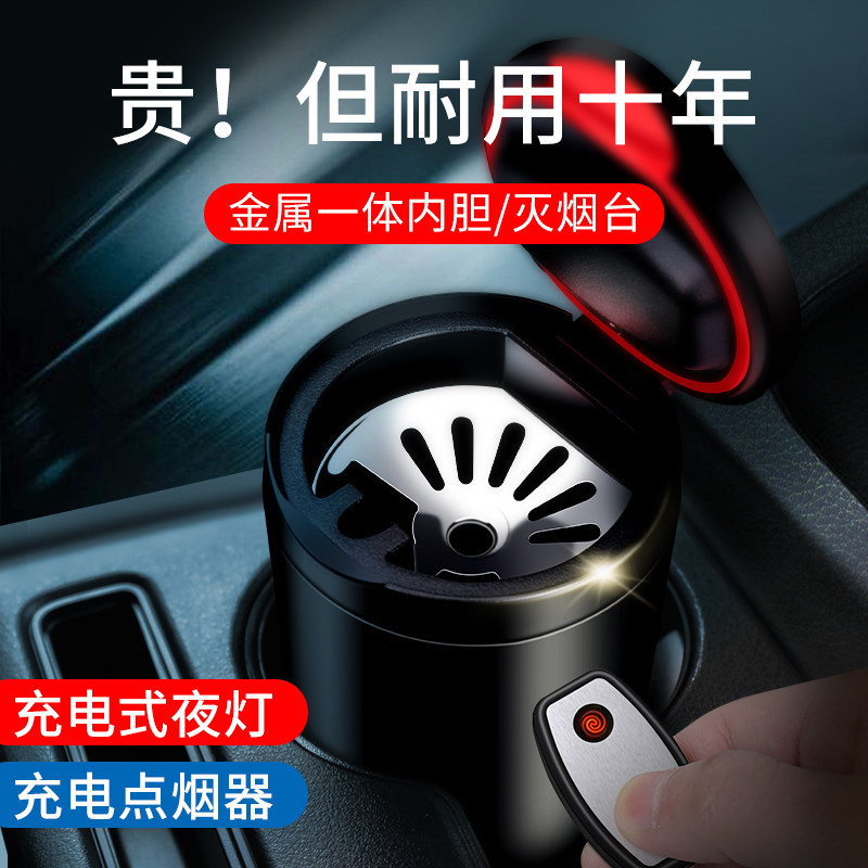 Car cigarette ash cylinder Multi-function cover does not fall off the gray Car with a grenade cylinder Car anti-fly ash creative luminous personality with lights