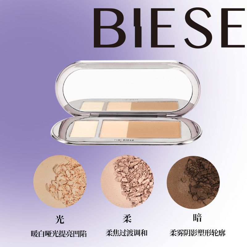 biese three-color trimming plate natural matte brightening powder cake shadow nose shadow highlight repair capacity integrated plate