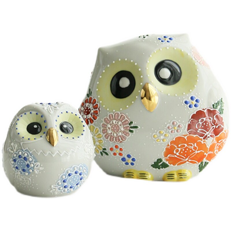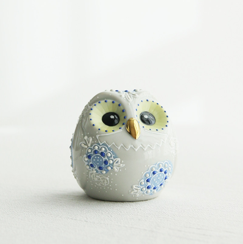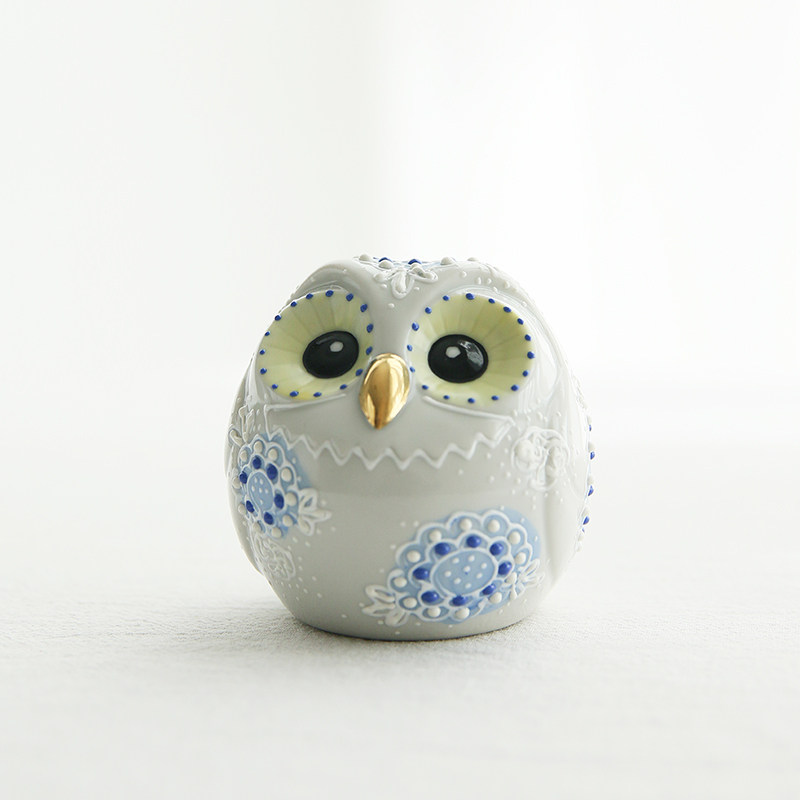 Spot Japan imported Kutani burner hand-painted blue and white flower owl desktop decoration with hand gift decoration crafts