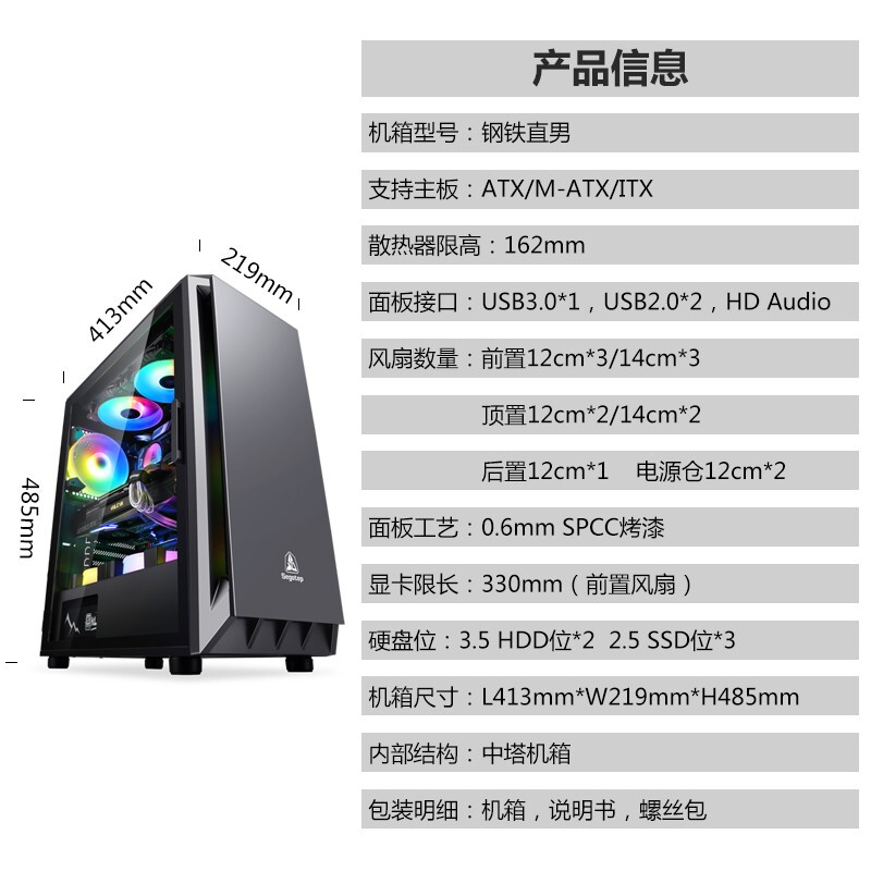Xingu straight male 1 main shell host computer mute water-cooled game large side through desktop computer female pink ATX large board