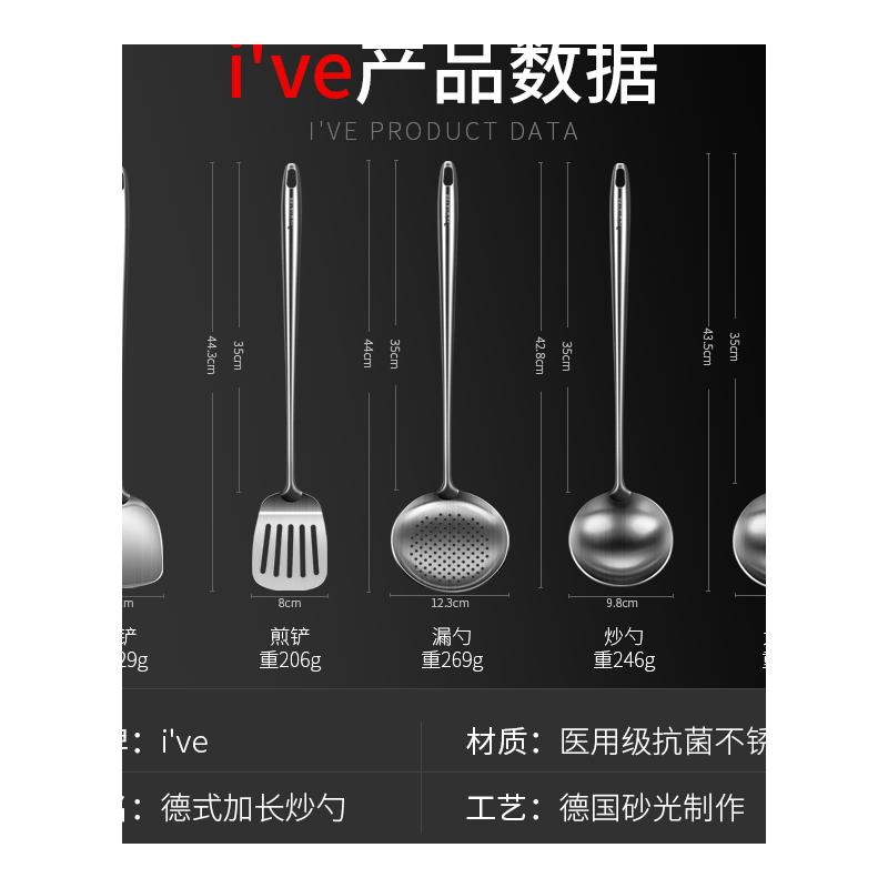 German ive antibacterial 304 stainless steel frying spoon cooking spoon plus long handle pot shovel kitchen utensils for home chefs